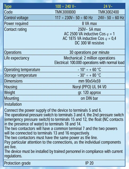 TMK3-110/220V — SECUENCIADOR DE BOMBAS 110/220VCA PARA RIELDIN
